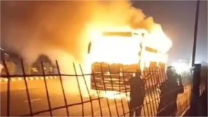 जानकारी के मुताबिक यह हादसा तड़के सुबद 4 बजे हुआ। इस बस में सवार यात्री महाकुंभ से स्नान के बाद राजस्थान के लिए वापसी कर रहे थे। बताया जा रहा है कि बस में अचानक शॉर्ट सर्किट के कारण आग लग गई। इस हादसे में मृतक की पहचान पवन शर्मा के तौर पर हुई।
