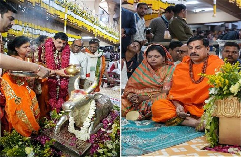 महाशिवरात्रि के पावन अवसर पर मुख्यमंत्री मोहन यादव सपत्नीक श्री महाकालेश्वर भगवान के दर्शन करने पहुंचे। जहां वे नंदीमंडप में आरती में सम्मिलित हुए। आरती उपरांत मुख्यमंत्री ने श्री महाकालेश्वर भगवान का पूजन-अर्चन किया। इस दौरान सीएम आंखें बंद किए बाबा महाकाल की भक्ति में लीन नजर आए।
