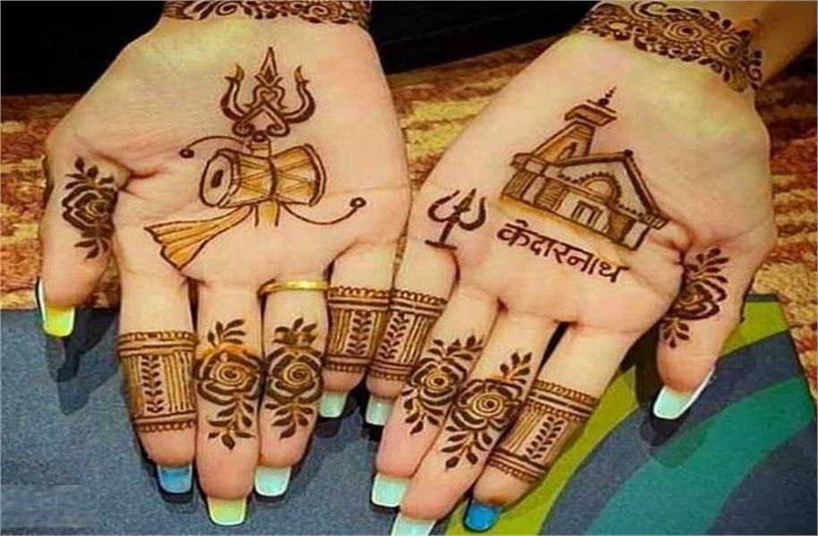 शिव और पार्वती के मिलन को दर्शाने वाला डिजाइन भी बहुत आम है। इसमें दोनों देवताओं की छवियाँ हाथों में उकेरी जाती हैं, जो एक सुंदर और अर्थपूर्ण डिजाइन है।