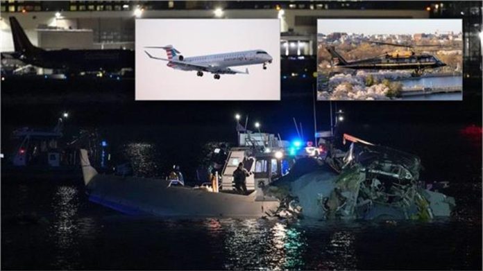 अमेरिका की राजधानी वाशिंगटन डीसी में एक भयावह विमान हादसा हुआ, जहां US एयरलाइन्स का CRJ700 बॉम्बार्डियर जेट और अमेरिकी सेना का ब्लैक हॉक (H-60) हेलीकॉप्टर आपस में टकरा गए। यह दुर्घटना व्हाइट हाउस से महज 5 किलोमीटर दूर स्थित रीगन एयरपोर्ट के पास हुई।