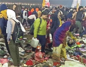 भगदड़ के बाद की भयावह तस्वीर सामने आई है। जिसमें दिखाई दे रहा है कि लोगों के जूते चप्पल और कपड़े पड़े हुए हैं किसी का सामान पड़ा हुआ है।