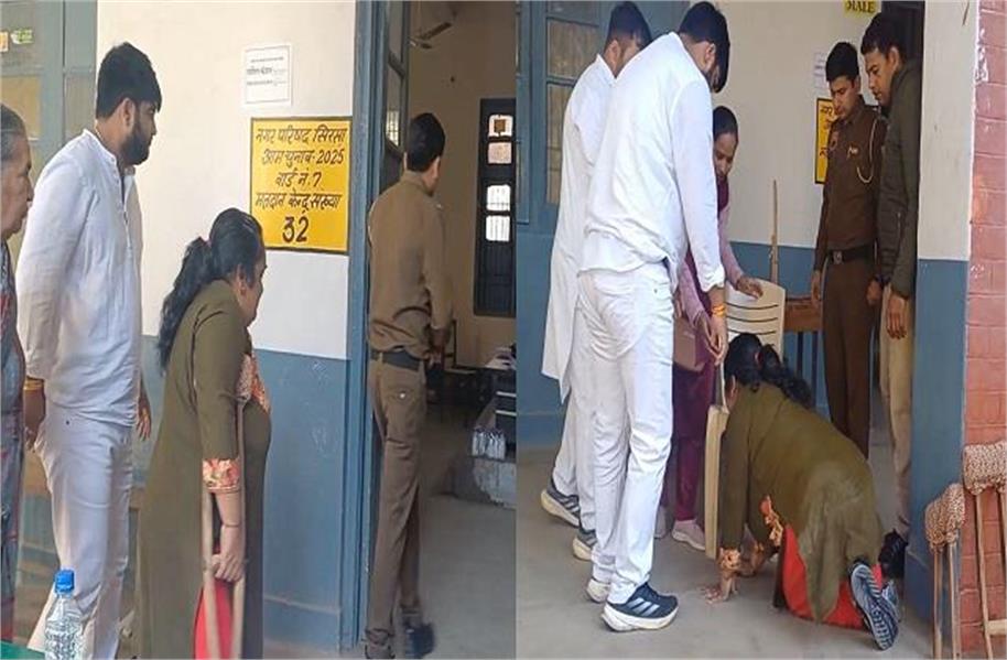 बता दें कि ये समस्या सिरसा के नेशनल कॉलेज स्थित वार्ड नंबर-7 के बूथ नंबर-31 की है जहां दिव्यांग महिला ज्योति रानी अपने मत का प्रयोग करने के लिए आई लेकिन आगे व्हीलचेयर नहीं होने के कारण उन्हें भारी परेशानी का सामना करना पड़ा। महिला को बूथ तक जाने के लिए रेंगते हुए जाना पड़ा।