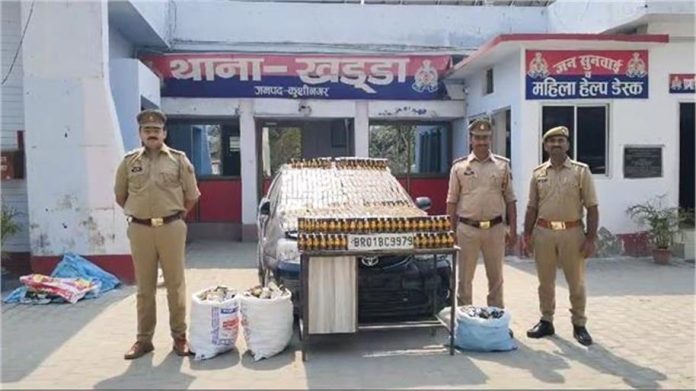 बिहार से सटे जिलों में अवैध शराब तस्करी थमने का नाम नहीं ले रहा है। ताजा मामला प्रदेश के कुशीनगर जिले से सामने आया है, यहां शराब तस्करों पर लगातार शिकंजा कसा जा रहा है। दरअसल, खड्डा थाना क्षेत्र में पिछले 10 दिनों में आठ शराब तस्करों पर कड़ी कार्रवाई की गई है। इस दौरान 27 लाख 35 हजार रुपये मूल्य की अवैध शराब को वाहन सहित जब्त किया गया। यह कार्रवाई अवैध शराब तस्करी के एक बड़े सिंडिकेट का पर्दाफाश करती है, जो उत्तर प्रदेश (यूपी) से बिहार तक शराब की तस्करी कर रहा था।