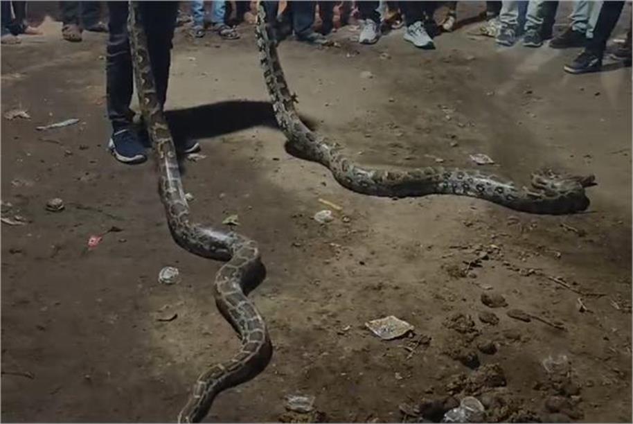करीब एक से डेढ़ घंटे की मशक्कत के बाद 2 सांपो को पकड़ने में सफलता मिली है। वहीं एक अजगर रात के अंधेरे में छिप गया जिसका रेस्क्यू नहीं किया जा सका, पकड़े गए दोनों अजगर सांपो को मड़ियादो के रमना वन क्षेत्र में छोड़ा गया, दोनों अजगर सांप करीब 8 से 10 फ़ीट लम्बाई वाले बताए गए हैं।