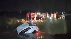 आरोपियों की कार भागते समय अनियंत्रित होकर बिजली के खंभे से टकराते हुए नहर में गिर गई. जिसके बाद पीछा कर रहे पुलिस के दो कांस्टेबल भी नहर में कूद गए.