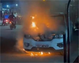 रविवार की रात को अचानक कार में आग लग गई थी। कार में आग लगाता देख आसपास के लोग तत्काल मदद के लिए पहुंच गए थे, स्थानीय लोगों ने आग बुझाने का प्रयास किया। फिलहाल यह पता नहीं चल पाया है कि कार में आग कैसे लगी थी पुलिस मामले की जांच कर रही है।
