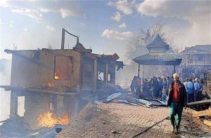 सैंज घाटी के तांदी गांव में सोमवार देर शाम एक भीषण अग्निकांड ने चारों ओर तबाही मचा दी। इस आग में दो रिहायशी मकान, एक फर्नीचर हाउस और देवता का भंडार जलकर राख हो गए। इस दुर्घटना से प्रभावित परिवारों को 50 लाख रुपए का भारी नुकसान हुआ है, लेकिन सौभाग्य की बात यह रही कि इस हादसे में किसी भी व्यक्ति की जान नहीं गई। अग्नि के प्रकोप ने घरों को पूरी तरह से नष्ट कर दिया, जिससे अंदर रखा सामान भी पूरी तरह जलकर राख हो गया।