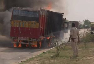 बक्सर के नया भोजपुर के पास लगी इस आग को बुझाने की कोशिश की जा रही है. पुलिस अधिकारीयों से अभी कोई बात नहीं हो पाई है. ट्रक में क्या कुछ सामान था और ये आग कैसे लगी अभी इसकी जानकारी नहीं मिल पाई है. पुलिस और दमकल की टीम मौके पर मौजूद है. आग के शोले आसमान तक उपर उठ कर दहक रहे हैं. गनीमत ये रही कि किसी के हताहत होने की खबर नहीं है.