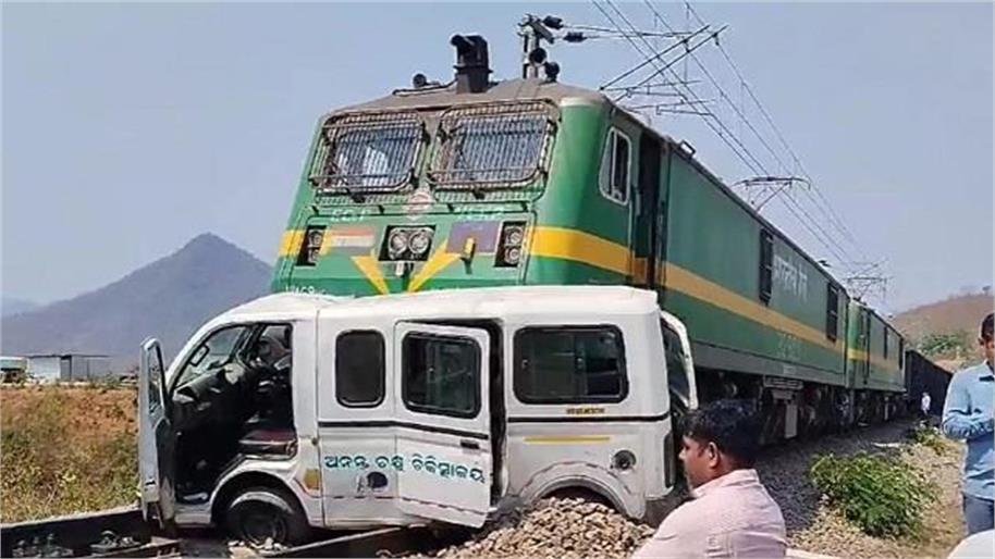 ओडिशा में रेलवे ट्रैक पर फंसी एंबुलेंस, मालगाड़ी ने 100 मीटर तक घसीटा, कोई हताहत नहीं