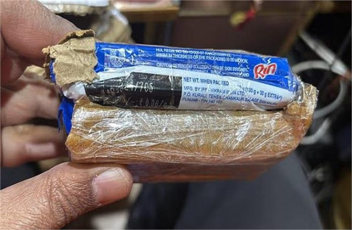 पार्सल से निकलीं रिन साबुन की 2 टिकियां