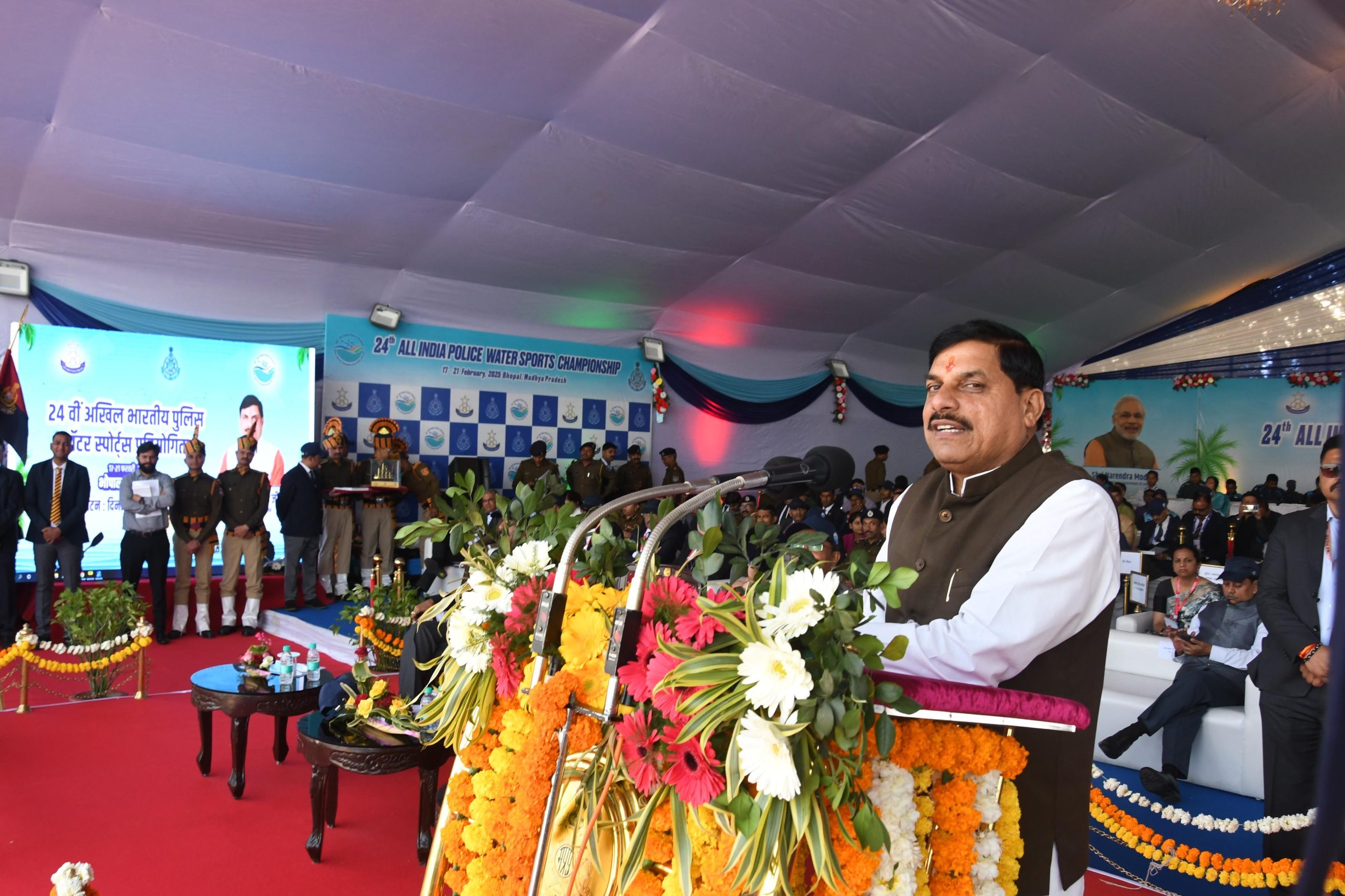 मुख्यमंत्री मोहन यादव ने आज भोपाल में 24 वीं अखिल भारतीय पुलिस वाटर स्पोर्ट्स प्रतियोगिता का शुभारंभ किया। मध्य प्रदेश पुलिस की मेजबानी में 17 से 21 फरवरी तक भोपाल के वोट क्लब बड़ा तालाब पर प्रतियोगिता आयोजित होगी। इसमें 22 राज्यों, केन्द्र शासित प्रदेशों और केन्द्रीय सशस्त्र बलों के 557 प्रतिभागी हिस्सा लेंगे। इस प्रतियोगिता में 132 महिला खिलाड़ी भी शामिल होंगी। इस मौके पर मुख्यमंत्री ने कहा है कि पुलिस अपने कर्तव्यों का पालन करते हुए नागरिकों की सुरक्षा और कानून व्यवस्था बनाए रखने के कार्य के साथ-साथ खेलों में भी अपनी छाप छोड़ रही है।