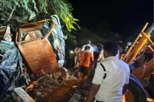 आंध्र प्रदेश में एक बड़ा हादसा हो गया। प्रदेश के अन्नामय्या जिले में आम से लदा एक ट्रक पलट गया। इस हादसे में नौ मजदूरों की दर्दनाक मौत हो गई और कई लोग जख्मी हो गए। यह दुर्घटना रविवार रात कडप्पा शहर से लगभग 60 किलोमीटर दूर पुल्लमपेटा मंडल के रेड्डी चेरुवु कट्टा में हुई। पुलिस के अनुसार, आम के लदे ट्रक के झील के बांध पर पलट जाने से उस पर बैठे मजदूर ट्रक के नीचे दब गए। आंध्र प्रदेश के मुख्यमंत्री चंद्रबाबू नायडू ने इस हादसे पर दुख व्यक्त किया। पूर्व मुख्यमंत्री और वाईएसआर कांग्रेस पार्टी के अध्यक्ष वाई.एस. जगन मोहन रेड्डी और जिला प्रभारी मंत्री बी.सी. जनार्दन रेड्डी ने भी दुर्घटना पर गहरा दुःख व्यक्त किया। उन्होंने कहा कि सरकार पीड़ितों के परिवारों को हर संभव सहायता प्रदान करेगी।