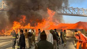 UP : प्रयागराज के संगम में लल्लूजी टेंट हाउस के गोदाम में लगी आग, फायर ब्रिगेड ने कड़ी मशक्कत के बाद पाया काबू