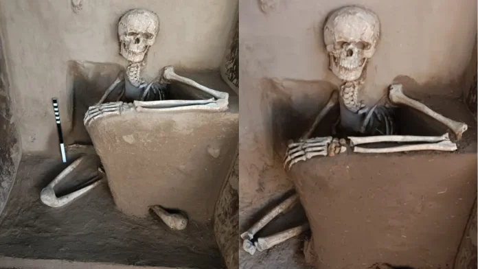 गुजरात के मेहसाना जिले के वडनगर में उस वक्त हलचल मच गई, जब जमीन की खुदाई के दौरान एक ऐसा कंकाल मिला, जिसे देखकर विशेषज्ञ भी हैरान रह गए. बताया जा रहा है कि यह कंकाल करीब 1000 साल पुराना है और योग मुद्रा में बैठा हुआ मिला है. DNA जांच के बाद खुलासा हुआ कि यह कंकाल संभवतः किसी साधु-संन्यासी का है, जिसने जीते-जी समाधि ली होगी.