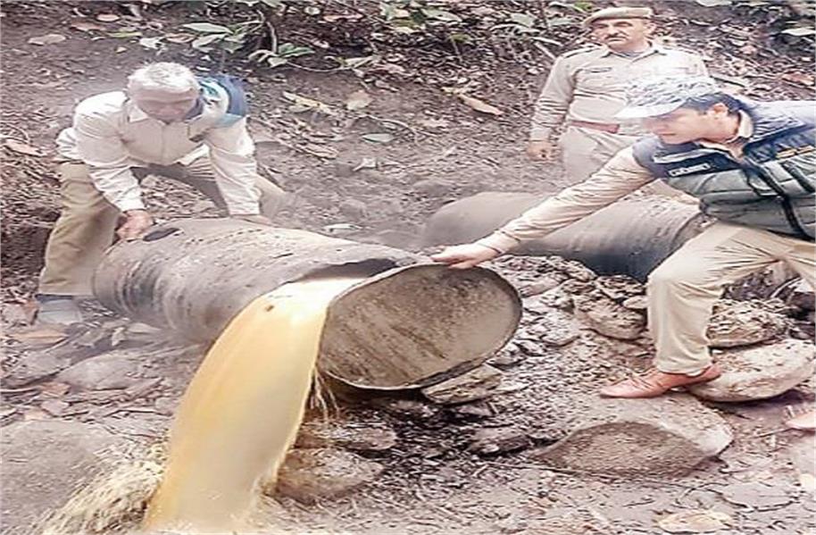 उपमंडल पांवटा साहिब के खारा के जंगल में वन विभाग की टीम ने अवैध शराब के खिलाफ कार्रवाई करते हुए 3 शराब की भट्ठियों सहित 2,100 लीटर लाहन को नष्ट किया गया है। जानकारी के अनुसार वन विभाग को सूचना मिली कि पांवटा साहिब के खारा के जंगल में अवैध रूप से शराब बनाने का धंधा चला हुआ है। सूचना मिलने के बाद वन विभाग की टीम मौके पर पहुंची तो देखा कि जंगल में 3 भट्ठियों पर अवैध शराब बनाने का काम चल रहा था।