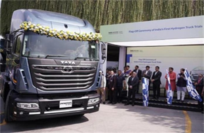वर्ष 2070 तक शुद्ध-शून्य उत्सर्जन प्राप्त करने के भारत के द्दष्टिकोण की दिशा में एक ऐतिहासिक विकास में, केंद्रीय सड़क परिवहन और राजमार्ग मंत्री नितिन गडकरी, केंद्रीय नवीन और नवीकरणीय ऊर्जा मंत्री प्रल्हाद जोशी ने आज यहां टाटा मोटर्स द्वारा लॉन्च किए गए हाइड्रोजन-संचालित हेवी-ड्यूटी वाले ट्रकों के पहले परीक्षणों को हरी झंडी दिखाई।