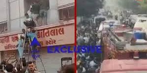 भावनगर में एक अस्पताल कॉम्प्लेक्स में आग लगने से अफरा-तफरी मच गई. 15-20 बच्चों समेत सभी मरीजों को कांच तोड़कर निकाला गया और दूसरे हॉस्पिटल में ट्रांसफर किया गया.भावनगर के समीप स्थित एक कॉम्प्लेक्स में आग लग गई. बताया जा रहा है कि जिस कॉम्प्लेक्स में आग लगी है, उसमें 10–15 अस्पताल स्थित हैं. आग लगते ही अस्पतालों में भर्ती मरीजों को तुरंत रिस्क्यू किया गया. सूत्रों के मुताबिक, 15 से 20 बच्चों को भी सुरक्षित बाहर निकाला गया. अस्पताल में भर्ती बच्चों और अन्य मरीजों को कांच तोड़कर बाहर निकालना पड़ा.