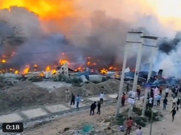 हरियाणा के गुरुग्राम जिले के बसई चौक के पास स्थिति झुग्गियों में शनिवार (29 मार्च) की अल सुबह भीषण आग लग गई. आग की इस घटना में दर्जनों झुग्गियां जलकर राख हो गई. अभी तक इस घटना में किसी के हताहत होने की सूचना नहीं है.