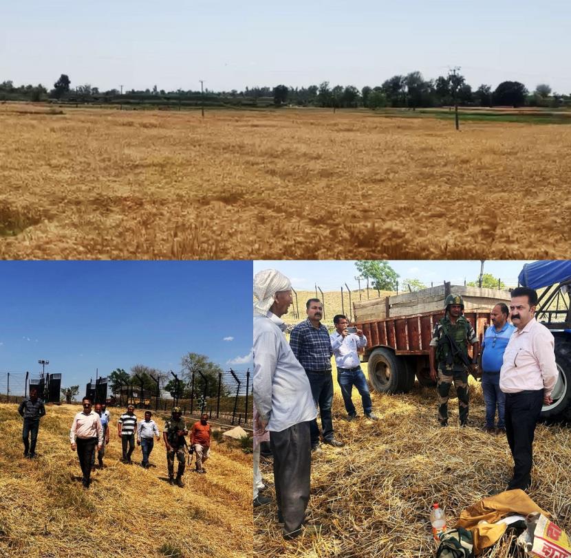 हीरानगर आईबी सेक्टर में चंदवान सीमा चौकी की जीरो लाइन के साथ चक चंगा गांव में बाड़ के पार पकी हुई गेहूं की फसल की कटाई शुरू हो गई. किसानों के लिए यह एक उल्लेखनीय उपलब्धि है.