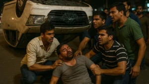 बिहार की राजधानी पटना के तारा मंडल इलाके में रविवार रात तेज रफ्तार इनोवा कार एक बड़े सड़क हादसे का कारण बन गई. घटना रात करीब 9 बजे की है जब तेज रफ्तार से आ रही इनोवा ने कई गाड़ियों को टक्कर मारने के बाद सड़क किनारे खड़े आठ लोगों को रौंद दिया. हादसे के बाद कार पलट गई. घटना के बाद स्थानीय लोगों में आक्रोश फैल गया. भीड़ ने कार चालक की जमकर पिटाई कर दी. सूचना मिलते ही कोतवाली थाने की पुलिस मौके पर पहुंची और सभी घायलों को इलाज के लिए अस्पताल भेजा.