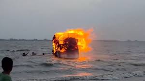 गुजरात के जामनगर में रविवार शाम एक फिल्मी सीन जैसा नजारा देखने को मिला. यहां एक ड्राइवर ने साहसिक और सूझबूझ भरा परिचय देते हुए आग से जलते ट्रक को डैम के पानी में कुदा दिया. रणजीतसागर डैम के पास की यह घटना है. जब बिजली के तार टकराने के कारण चारे से लदे एक ट्रक में आग लग गई. आग की लपटों से घिरने के बाद ड्राइवर ने सूझबूझ दिखाते हुए ट्रक को डैम के पानी में डाल दिया ताकि आग को और फैलने से रोका जा सके. इस घटना से आसपास के इलाके में अफरा-तफरी मच गई.