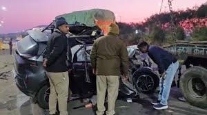 इंदौर के रालामंडल बायपास पर शुक्रवार तड़के एक तेज रफ्तार नेक्सॉन कार और ट्रक के बीच जोरदार भिड़ंत हो गई. इस हादसे में मध्य प्रदेश के कद्दावर आदिवासी नेता और पूर्व गृहमंत्री बाला बच्चन की बेटी प्रेरणा, कांग्रेस प्रदेश प्रवक्ता आनंद कासलीवाल के बेटे प्रखर और एक अन्य युवक मनसिंधु की मौके पर ही मौत हो गई. कार में सवार अनुष्का नाम की युवती गंभीर रूप से घायल हुई है, जिसे अस्पताल में भर्ती कराया गया है.