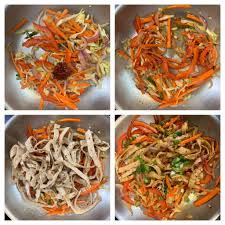 फिर बाकी सब्ज़ियां डालें (गाजर, शिमला मिर्च, टमाटर) और 2–3 मिनट तक तेज़ आंच पर भूनें.