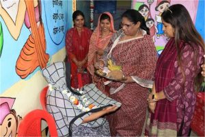 महिला एवं बाल विकास मंत्री निर्मला भूरिया ने झाबुआ जिले के कल्याणपुरा के तड़वी फलिया में स्थित आंगनवाड़ी केन्द्र पर पहुँच कर मंगल दिवस आयोजन में सम्मिलित हुई। मंत्री निर्मला भूरिया ने कुपोषित बच्चे की माता और मोटी आई से संवाद किया और बच्चें की देखरेख कर पौष्टिक आहार, टीएचआर लड्डू एवं गुड़ चना खिलाये जाने और बच्चे की शिशु रोग विशेषज्ञ से स्वास्थ्य परीक्षण कराये जाने के निर्देश दिए। उन्होंने बच्चों को टीएचआर से बने लड्‌डु खिलाए एवं मोटी आई का पुष्पमाला पहना कर सम्मान किया।