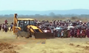 घटनास्थल पर मौजूद पुलिस अधीक्षक ने बताया, “कुछ लोग साइट पर विरोध कर रहे थे और कार्य को रोकने की कोशिश कर रहे थे. जब जेसीबी काम में लगी थी, तभी एक व्यक्ति जानबूझकर मशीन के सामने कूद गया, जिससे उसकी मौत हो गई. स्थिति अब नियंत्रण में है और हम जनता से बात कर रहे हैं.”
