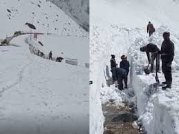 लोक निर्माण विभाग के अधिशासी अभियंता विनय झिक्वांण ने बताया कि चटक धूप में ऊपरी हिस्सों से बर्फ खिसकने का खतरा बना हुआ है. ऐसे में मजदूरों को सतर्कता बरतने के निर्देश दिए गए हैं. हिमखंडों को काटकर चार फीट चौड़ा रास्ता बनाया जा रहा है, ताकि यात्रियों के लिए सुरक्षित मार्ग तैयार किया जा सके.