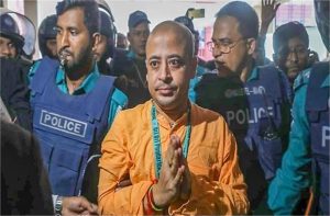 बांग्लादेश की एक अदालत ने हिंदू संत और इस्कॉन से जुड़े रहे चिन्मय कृष्ण दास को देशद्रोह के मामले में जमानत देने से इनकार कर दिया। चिन्मय कृष्ण दास को सुनवाई के लिए अदालत नहीं लाया गया और वह ऑनलाइन माध्यम से अदालत की कार्यवाही में शामिल हुए। इस्कॉन के सदस्य रह चुके दास को 25 नवंबर को ढाका के हजरत शाहजलाल अंतरराष्ट्रीय हवाई अड्डे पर गिरफ्तार किया गया था।