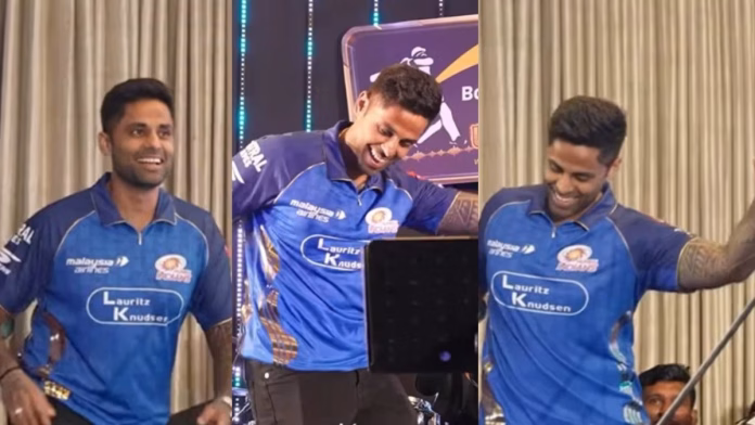 मुंबई इंडियंस ने सोशल मीडिया पर वीडियो शेयर किया, जिसमें सूर्यकुमार यादव एमआई की जर्सी पहनकर स्टेज पर चढ़ते वक्त रहमान डकैत के स्टाइल में डांस करते हुए दिखाई दिए. सूर्या का यह डांस फैंस को खूब पसंद आ रहा है. उन्होंने काफी बारीकी से डांस को कॉपी किया है. वीडियो को पोस्ट करते हुए कैप्शन में लिखा गया, “दादा का स्टाइल है, फुल धुरंधर मूड.” मुंबई के आईपीएल 2026 के पहले मैच में सूर्या का बल्ला खामोश दिखाई दिया. उन्होंने 8 मैचों में 3 चौकों की मदद से सिर्फ 16 रन स्कोर किए थे. अब देखना दिलचस्प होगा कि वह पूरे टूर्नामेंट में कैसा प्रदर्शन करते हैं.