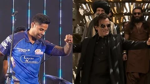 आईपीएल 2026 के बीच सूर्यकुमार यादव धुरंधर के रहमान डकैत के जैसा डांस करते हुए दिखे. भारत के फिल्मी जगत में चारों तरफ सिर्फ धुरंधर (Dhurandhar) का ही नाम गूंज रहा है. जनता को मूवी काफी पसंद आ रही है. अब इस फिल्म का खुमार आईपीएल 2026 में मुंबई इंडियंस के लिए खेल रहे भारत के टी20 कप्तान सूर्यकुमार यादव (Suryakumar Yadav) भी चढ़ता दिख रहा है. सूर्या ने धुरंधर के मशहूर कैरेक्टर रहमान डकैत का डांस स्टाइल कॉपी किया.