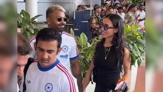 भारत और न्यूजीलैंड के बीच टी20 विश्व कप का फाइनल 08 मार्च, रविवार को अहमदाबाद के नरेंद्र मोदी स्टेडियम में खेला जाएगा, जिसके लिए भारतीय टीम शुक्रवार (06 मार्च) को अहमदाबाद पहुंची. जहां कई खिलाड़ी टीम बस के साथ होटल निकल गए, जबकि जसप्रीत बुमराह और अक्षर पटेल अपनी-अपनी कारों से गए. इसी बीच हार्दिक का वीडियो सामने आया. हार्दिक जाते हैं और गौतम गंभीर से अपनी गर्लफ्रेंड माहिका शर्मा की मुलाकात करवाते हैं. गंभीर और माहिका एक दूसरे से मिलते हैं. इस दौरान गंभीर का रिएक्शन साधारण सा ही रहता है. हेड कोच के चेहरे पर एक स्माइल देखने को मिलती हैं.