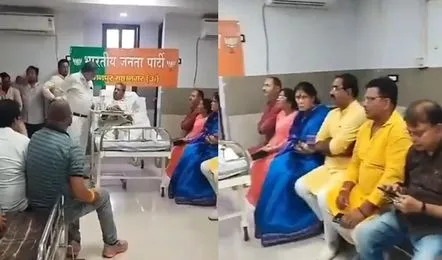 UP : पैर टूटने पर अस्पताल में भर्ती हुए BJP जिलाध्यक्ष तो वार्ड को ही बैनर टांगकर बना लिया दफ्तर