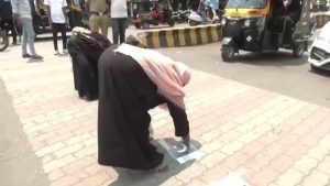 दरअसल, कर्नाटक में पाकिस्तान के विरोध में बजरंग दल के कार्यकर्ताओं ने पाकिस्तानी झंडे की फोटो को जमीन पर चिपका दिया था. जिससे दुश्मन देश का झंडा कुचला जा रहा था. हालांकि, इस दौरान वहां से बुर्के में गुजर रही महिलाओं ने टेप निकालकर पाकिस्तानी झंडे को निकाल-निकाल कर साइड में कर दिया.