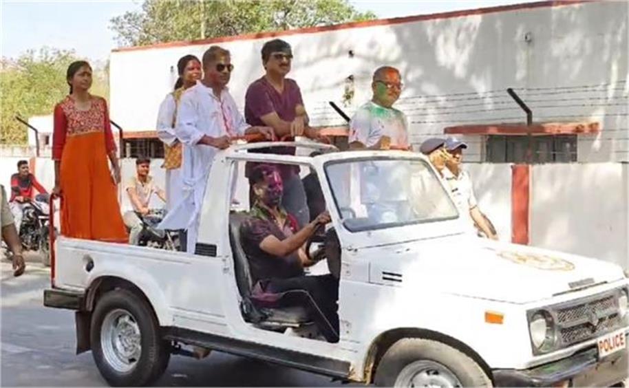 इस बार भी परम्परा के मुताबिक एसपी संजीव कुमार सिन्हा अपने बंगले से एक खुली जीप में कलेक्टर किशोर कुमार कन्याल को साथ लेकर पुलिस लाईन पहुंचे। दोनों अधिकारी होली के उत्साह में पूरी तरह डूबे नजर आ रहे थे। अधिकारियों का उत्साह देखकर पुलिस कर्मचारियों ने होली का खुलकर लुत्फ उठाया। परेड ग्राउंड पर पुलिस अधिकारी, कर्मचारियों ने एक-दूसरे को गुलाल और रंग लगाकर होली की शुभकामनाएं दीं। एसपी ने शहर में शांतिपूर्ण वातावरण में होली मनाए जाने के लिए मैदानी अमले को श्रेय दिया और उनका उत्साहवर्धन करते नजर आए।