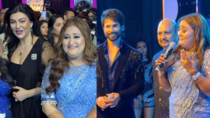 एंटरप्रेन्योर सीमा सिंह इस समय हर जगह छाई हुई हैं. उनकी बेटी डॉक्टर मेघना सिंह की बुधवार को संगीत सेरेमनी हुई थी. इस संगीत फंक्शन में आधे से ज्यादा बॉलीवुड पहुंचा था. सुष्मिता सेन, शिल्पा शेट्टी से लेकर शाहिद कपूर और करण जौहर इस फंक्शन में शामिल हुए थे. इस फंक्शन की वीडियो सोशल मीडिया पर खूब वायरल हो रही हैं. बॉलीवुड सेलेब्स का अलग ही स्टाइल देखने को मिला. किसी में शाहिद ठुमके लगा रहे हैं तो किसी में करण-सुष्मिता होस्टिंग करते नजर आ रहे हैं.