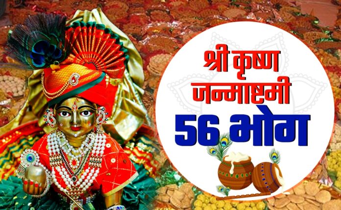 कहा जाता है कि पूरी दुनिया में छह प्रकार के रस (स्वाद) हैं, जिसमें मीठा, नमकीन, कड़वा, अमलीय, खट्टा और कैसला स्वाद शामिल है. इन्हीं छह स्वाद के मेल से 56 पकवान बनाए जाते हैं. कान्हा के 56 भोग में मुख्य रूप से- माखन, मिश्री, पंजीरी, खीर, रसगुल्ला, मालपुआ, जलेबी, जीरा लड्डू, काजू-बादाम की बर्फी, पेड़ा, घेवर, रबड़ी, मूंग का हलवा, पिस्ता, बर्फी, घी, शक्कर पारा, मठरी, चटनी, पकौड़े, साग, दही, चावल, कढ़ी, खिचड़ी, केला, आम, किशमिश, आलू बुखारा, सेब, अंगूर, मुरब्बा, पापड़, चीला, दलिया, टिक्की, पुड़ी, दुधी की सब्जी, बैंगन की सब्जी, शहद, कचौरी, रोटी, छाछ, मीठे चावल, चना, भुजिया, नारियल, पान, मेवा, बादाम का दूध, शिकंजी आदि शामिल हैं. लेकिन इस बात खास ध्यान रखें कि भोग तैयार करते समय लहसुन-प्याज का इस्तेमाल ना करें.